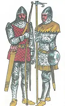 - Coredon, Christopher (2007). A Dictionary of Medieval Terms & Phrases (الطبعة المُعاد نشرُها). Woodbridge, UK: D. S. Brewer. صفحة 80. ISBN 978-1-84384-138-8. الوسيط