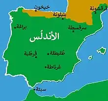 |CitationClass=تم تجاهله (مساعدة); تحقق من التاريخ في:|سنة=(مساعدة) - الحجِّي، عبدُ الرحمٰن عليّ (1402هـ- 1981م). التاريخ الأندلُسي، من الفتح الإسلامي حتى سقوط غرناطة 92-897هـ (711-1492م) (الطبعة الثانية). بيروت - لُبنان: دار القلم. صفحة 52. الوسيط