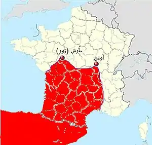 |CitationClass=تم تجاهله (مساعدة) - Meadows, Ian. "The Arabs in Occitania", Saudi Aramco World: Arab and Islamic Culture and Connections نسخة محفوظة 29 نوفمبر 2014 على موقع واي باك مشين.