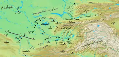 |CitationClass=تم تجاهله (مساعدة); تحقق من التاريخ في:|تاريخ الوصول=, |سنة=(مساعدة) - عمَّاش، صالح مهدي (1978). قُتيبة بن مُسلم الباهلي وحركات جيش المشرق الشمالي فيما وراء النهر (الطبعة الأولى). بغداد - العراق: منشورات وزارة الثقافة والفنون. صفحة 71. الوسيط