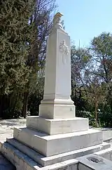 وضع الشاعر ألكسندروس سوتسوس لوحة أخرى لأعضاء الفرقة المقدسة، صاغها ليونيداس دروسيس، في ذكرى شقيقه ديميتريوس، قائد المائة الساقط للفرقة المقدسة في عام 1845 شمال غرب الجامعة. ومنذ عام 1885 تم نقل الشاهدة بالقرب من المعبد المقدس لسيارات الأجرة في Pedion tou Areos، بالقرب من نصب ألكسندر إيفسيلانتيس، الذي تم صنعه في عام 1869 من قبل دروسيس.