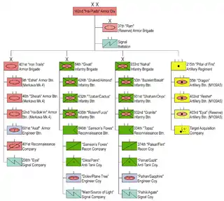 الفرقة 162 المدرعة، والمعروفة أيضًا باسم تشكيل الصلب ( (بالعبرية: עֻצְבַּת הַפְּלָדָה) هي فرقة مدرعة نظامية في الجيش الإسرائيلي، وهي تابعة للقيادة الإقليمية الجنوبية. يقود الفرقة العميد موتي باروخ.