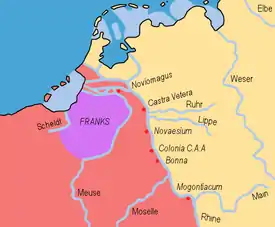 توكساندريا، الأرض الأصلية للفرنجة الساليين، داخل الإمبراطورية الرومانية الغربية أطلق عليها الفرنجة