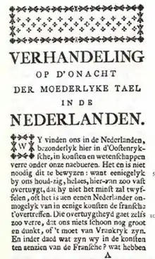 |CitationClass=تم تجاهله (مساعدة) - Original title: Verhandeling op d’onacht der moederlyke tael in de Nederlanden