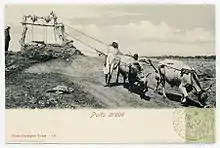 تبقى الفلاحة التونسية مرتبطة بتذبذب الموارد المائية. في الصورة استخراج المياه من بئر في الصحراء التونسية سنة 1904.