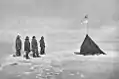 روال أموندسن وبعثته يرفعون علم النرويج على القطب الجنوبي في عام 1911.
