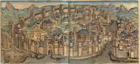 تم غزو القسطنطينية من قبل الإمبراطورية العثمانية في 29 مايو 1453.[60] كان العثمانيون تحت قيادة السلطان العثماني محمد الثاني البالغ من العمر 21 عامًا. جاء غزو القسطنطينية بعد حصار دام سبعة أسابيع بدأ في 6 أبريل 1453.