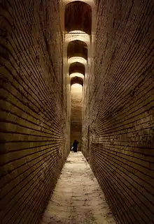 إن طاق الإيوان في القصر العباسي يعد أكبر طاق معقود على الطراز الأول، والسقف قائم على جدارين تبلغ المسافة بينهما خمسة أمتار. من جانب آخر، يحيط بالصحن الكبير مجازات ودهاليز، وطول الدهليز في القصر العباسي 26.70 متر، وعرضه 1.28 متر، وارتفاعه 9.20 متر، أما القاعات الكبرى فتبلغ خمس قاعات.