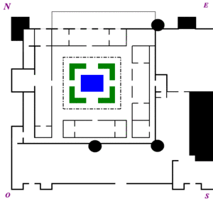 تم بناء الفناء الرئيسي للقصر أثناء القرني الثالث عشر والرابع عشر وكان متواجد بالقرب من حديقة كبيرة وحمام للسباحة رئيسي مصنوع من الجير. كان فناء محاط بدير مبني بالأعمدة ذات الثمانية الزوايا.