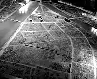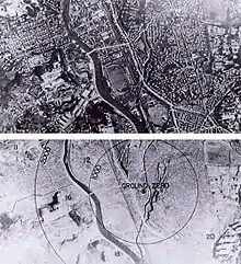 - سُجِّل موت ما لا يقل عن اثنين من الأسرى بعد الحرب بسبب السرطان، ويُعْتَقَد أن يكون ذلك نتيجة القنبلة الذرية.[60] بلغ نصف قطر دائرة الدمار حوالي ميل (1-2 كم)، يليها حرائق منتشرة في الجزء الشمالي من المدينة على بعد ميلين (3 كم) من جنوب القنبلة.[61][62]