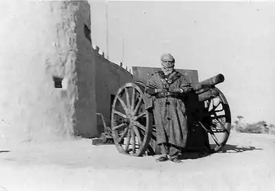 بنيت في عهد الطليان[6] سنة 1935, وأمام قلعة من الخارج مدفعين يعود تاريخهما إلى الحرب العالمية الأولى وبنوها لاجل مراقبة المدينة وذلك فعل الفرنسين بعد احتلال المدينة بعد خسارة إيطاليا الحرب العالمية الثانية أمام الحلفاء وتم تقسيم ليبيا ما بين ثلاثة دول استعماريةٍ، وكانت فرنسا من نصيبها فزان.