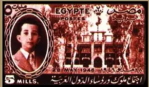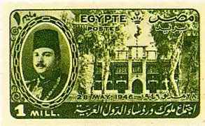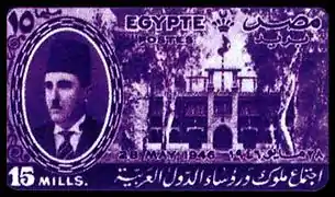 إجتماع القمة العربية الأولى في 28 مايو 1946 في قصر أنشاص بمصر-طابع تذكاري للملك فاروق الأول ملك مصر
