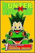 ![]() غلاف المجلد الأول من مانغا HUNTER×HUNTER كما أصدرتها شوئيشا في 4 يونيو 1998 في اليابان | |