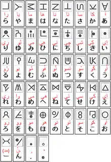 - قائمة بالحروف الأبجدية في اللغة المستخدمة في القناص وما يقابلها في اللغة اليابانية إضافة إلى طريقة اللفظ وصل لهذا المسار في 13 أكتوبر 2007نسخة محفوظة 11 يناير 2017 على موقع واي باك مشين.