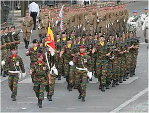 خلال الحرب الباردة، شريطة بلجيكا I البلجيكية فيالق (HQ Haelen Kaserne، Junkersdorf، Lindenthal (كولونيا))، وتتألف في 1980s شعبة 1 واليا 16 شعبة (HQ Nehiem، FRG)، إلى الناتو 'ق الحلفاء قوات أوروبا الوسطى للدفاع عن ألمانيا الغربية.[2] كانت هناك أيضا اثنين من كتائب الاحتياط (10 لواء اليا، Zonhoven، وكتائب 12TH موتوريسيد، لييج)، أكبر قليلا من الألوية الأربعة النشطة، والتي يمكن أن تعمل بشكل مستقل عند الضرورة. قوات الداخلية تتألف من فوج المغاوير شبه، و31-39 المستقلة كادر الشركات شبه فدائية، وثلاثة الدفاع الوطني كتائب المشاة الخفيفة (5 الفصل، سي 3، سي و4) وتسعة أفواج المحافظات مع اثنين وخمس كتائب مشاة خفيفة لكل منهما. (Isby وKamps، 1985، 64، 72)