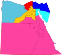 - المنطقة الجنوبية العسكرية: هي إحدى المناطق الأربع العسكرية للقوات المسلحة. وتنتشر عناصرها في محافظات أسيوط وسوهاج وقنا والأقصر وأسوان والبحر الأحمر والوادي الجديد. وتخضع قيادة المنطقة لضابط برتبة لواء.[100]