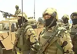 - قوات التدخل السريع: هي قوات محمولة جوًّا ذات طابع خاص، شُكلت في مارس 2014، وتتسم بالقدرات البدنية والقتالية العالية وطبيعة العمل الخاص المسلح. تضم القوات أكفأ العناصر من المشاة الميكانيكي والمدرعات والدفاع الجوي والمدفعية والاستطلاع والشرطة العسكرية وتمتلك عدد من الطائرات المجهزة للإبرار الجوي والمزودة بالأسلحة والمعدات. تختص القوات بمواجهة كل المخاطر والتهديدات الإرهابية المحتملة ضد الأهداف والمنشآت الحيوية وكيفية التصدي لها بالأسلوب الأمثل داخل وخارج البلاد.[114][115]