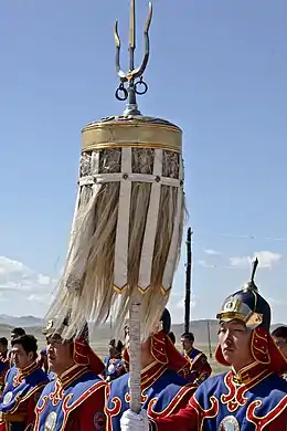 ![]() Honor guards holding the White Banner of the Mongols | ||||||||||||