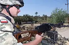 جندي بولندي يحمل الرشاش الثقيلة في العراق