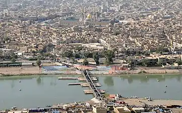 الكاظمية، وهي أحد مناطق بغداد العريقة في جانب الكرخ، سميت بهذا الاسم نسبة لوجود مرقد الامام موسى الكاظم ، وتحتوي على بعض عوائل الطبقة الراقية الارستقراطية حيث اشتغل بعض أهلها بصياغة وبيع الذهب وتحتوي على أشهر سوق للذهب في العراق حيت تعج بالمتبضعين وخاصة العرسان لشراء الذهب منها والمسمى بالنيشان لدى العراقيين، وتحتوي على شارع المحيط الراقي الذي سكنه نواب برلمان العهد الملكي، وهي من المناطق المقدسة لدى المسلمين ومن أشهر عوائلها بيت الاستربادي حيث كانت هذه العائلة تربطها أواصر صداقة مع نوري السعيد رئيس الوزراء العراقي الراحل في العهد الملكي وعند هروبه التجأ إليها في انقلاب حركة 14 تموز 1958م.[2] وكذلك وبيت الجمالي ومنهم رئيس الوزراء محمد فاضل الجمالي في عهد الملك فيصل الثاني.[3]، وفي القرن التاسع عشر حتى أربعينيات القرن العشرين، كانت المنطقة تُسمّى الكاظِمَيْن.[4][5]