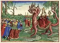 نسخة ملونة من توضيح عاهرة بابل من ترجمة مارتن لوثر للكتاب المقدس عام 1534