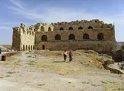 "ثم يرحلون إلى حصن الكرك. وهو أعجب الحصون وامنعها واشهرها. ويسمى بحصن الغراب. والوادي يطيف به من جميع جهاته وله باب واحد قد نحت المدخل إليه في الحجر الصلد. ومدخل دهليزه كذلك. وبهذا الحصن يتحصن الملوك، واليه يلجأون في النوائب وله لجأ الملك الناصر. لآنه ولي الملك وهو صغير السن. فاستولى على التدبير مملوكه سلار النائب عنه. فأظهر الملك الناصر أنه يريد الحج. ووافقه الأمراء على ذلك. فتوجه إلى الحج. فلما وصل ألى عقبة أيلة، لجأ إلى الحصن وأقام فيه أواماً ألى أن قصده أمراء الشام. واجتمعت عليه المماليك وكان قد ولي الملك في تلك المدة بيبرس الششنكير وهو أمير الطعام وتسمى بالملك المظفر. وهو الذي بنى الخانقاه البيبرسية بمقربة من خانقاه سعيد السعداء التي بناها صلاح الدين بين أيوب. فقصده الملك الناصر بالعساكر. ففر بيبرس إلى الصحراء. فتبعه العساكر فقبض عليه، فأتى به إلى الملك الناصر فأمر بقتله، فقتل. وقبض على سلار وحبس في جب حتى مات جوعاً. ويقال أنه أكل جيفة من الجوع. نعوذ بالله من ذلك. وأقام الركب في خارج الكرك أربعة أيام، بموضع يقال له الثنية. وتجهزوا لدخول البرية ثم ارتجلنا إلى معان، وهو آخر الشام ونزلنا من عقبة الصوان إلى الصحراء التي يقال فيها: داخلها مفقود وخارجها مولود. وبعد مسير يومين نزلنا ذات حج وهي حسبان لا عمارة فيها ثم وادي بلدح ولا ماء فيه".[3]