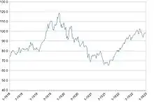 مؤشر داو جونز الصناعي من يناير 1918 إلى يناير 1923.وصل المؤشر إلى أعلى مستوياته عند 119.6 في3 نوفمبر 1919 ووصل إلى أدنى مستوياته عند 63.9 في 24 أغسطس 1921 وانخفاض بنسبة 47%.