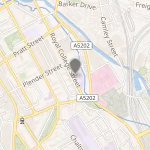 لا تزال مباني الثلاثينيات في شارع الكلية الملكية في مدينة كامدن بالقرب من محطة سانت بانكراس للسكك الحديدية مع توسيعات طفيفة. ما يقرب من نصف الطلاب الجامعيين يقيمون هناك في وقت واحد. يعد حرم كامدن أيضًا مقرًا لاتحاد طلاب الكلية الملكية للطب البيطري (RVCSU) ، بما في ذلك بار الكلية الرئيسي الهكسبي.
