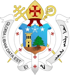 ![]() شعار البطريركيّة المارونيّة: "مجد لبنان أعطي له" (أشعياء 35: 2). شعار البطريركيّة المارونيّة: "مجد لبنان أعطي له" (أشعياء 35: 2). | ||||