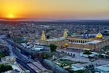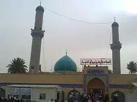![]() مسجد الكوفة يظهر في الصورة مرقدي مسلم بن عقيل إلى اليسار وهانئ بن عروة إلى اليمين. | |