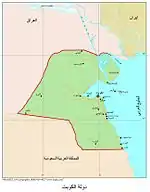 الكويت أو (رسميًا: دَوْلَةُ الْكُوَيْت)؛ هي دولة عربية تقع في الشرق الأوسط من جنوب غرب القارة الآسيوية، وتحديدًا في الركن الشمالي الغربي للخليج العربي الذي يحدها من الشرق، حيث يحدها من الشمال والغرب جمهورية العراق ومن الجنوب المملكة العربية السعودية، وتبلغ مساحتها الإجمالية 17,818 كيلومتر مربع، في حين يبلغ عدد السكان طبقًا لأخر إحصاء 4,67 مليون نسمة.[19] وجاءت تسمية الكويت إلى تصغير لفظ "كوت" الذي يعني الحصن أو القلعة، وقد شُيّد بالقرب من الساحل في القرن السابع عشر ميلادي.[20] تأسست مدينة الكويت عام 1613[21][22] وتولى الحكم فيها أسرة آل صباح وهم فرع من قبائل العتوب، وكان غالب سكان الكويت منذ تأسيسها يمتهنون الغوص على اللؤلؤ والتجارة البحرية بين الهند وشبه الجزيرة العربية، الأمر الذي ساعد على تحويل الكويت إلى مركز تجاري في شمال الخليج العربي وجعلها ميناء رئيسياً لكل من شبه الجزيرة العربية وبلاد الرافدين.[23] وقد ظلت مهنة الغوص على اللؤلؤ العصب الأساسي للاقتصاد الكويتي حتى عام 1946 حينما بدأت الحقبة النفطية بتصدير أول شحنة نفط.[24]