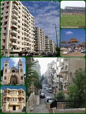 ![]() من معالم المدينة أبنية في منطقة مشروع الأوقاف • الملعب البلدي • الشاطئ الأزرق • حي الأمريكان مركز المدينة • مدرسة الكلية الوطنية الخاصة • كنيسة اللاتين