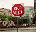 لافتة توقف ثنائية اللغة في اوتاوا وأونتاريو وكانادا..