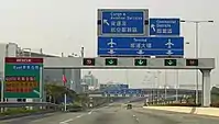 لافتة خروج في موريشيوس باللغتين الإنجليزية والفرنسية.