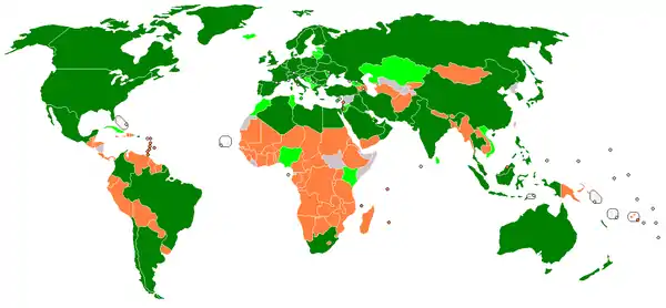 إضافة إلى الأعضاء كاملي العضوية والمشاركين، وبهدف الوصول إلى أكبر عدد ممكن من الدول أطلقت اللجنة في العام 2001 برنامج يدعوا الدول للإنظام كدول تابعة للمنظمة. وعدد هذه الدول حتى الآن هو 37 دولة:[4]
