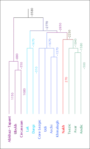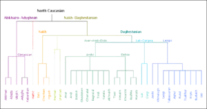 ![]() شجرة أسرة اللغات القوقازية الشمالية (نيكولاييف وستاروستين 1994) |