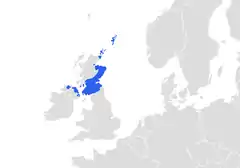 ![]() مناطق تحدث اللغة/اللهجة الإسكتلندية. | ||||