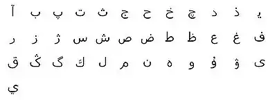 | А а | Б б | В в | Г г | Ғ ғ | Д д | Ҙ ҙ | Е е |