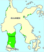 The green shaded area shows the concentration of Buginese speakers.