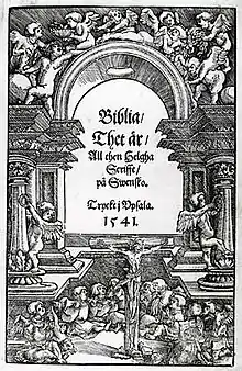 السويدية الحديثة (بالسويدية nysvenska) بدأت منذ مجيء تقنيات الطباعة وبزوغ فجر عصر الإصلاح الأوروبي، فبعد أن تسلم العاهل الجديد جوستاف فاسا مقاليد السلطة بالبلاد أصدر أمراً بطبع ترجمة للعهد الجديد بالسويدية. ظهرت الترجمة في العام 1526 والتي يشار إليها عادة باسم طبعة جوستاف فاسا. ومع كثير من التنقيح والمراجعة في الطبعات اللاحقة تم اعتبار هذه الترجمة ناجحة ومؤثرة إلى حد أنها ظلت الترجمة الأكثر شيوعاً للإنجيل حتى عام 1917. ومن بين أهم المترجمين لها كان لاورنتيوس أندريه والأخوان لاورنتيوس وأولاس بتري. لقد اعتبرت ترجمة إنجيل الملك جوستاف فاسا على أنها نقطة التقاء معقولة بين القديم والجديد، على الرغم من أنها لم تتقّد كثيراً باللغة المتداولة على ألسنة العامة وقتها، إلا أنها لم تكن شديدة التمسك بشكل مفرط باستخدام التعبيرات القديمة المهجورة.[7] لقد كانت خطوة رئيسية وهامة نحو "أورثوجرافيا" سويدية أكثر اتساقا وثباتا. فقد أسست الاستخدام النهائي للأحرف المتحركة "å", "ä","ö"، ولهجاء "ck" بدلاً من "kk" مفرقة إياها عن الإنجيل الدنماركي، ربما بشكل مقصود، نتيجة لطبيعة التنافس بين البلدين. المترجمون الثلاثة جميعهم جاؤوا من أواسط السويد مما أضفى على ترجمة العهد الجديد خصالاً سويديةً وسطى كما يراها البعض.
