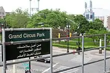 لافتة باللغتين الإنجليزية والعربية في مدينة ديترويت الأمريكية.