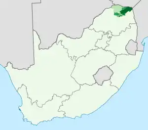 ![]() {{{mapalt}}} Geographical distribution of Tshivenda in South Africa: proportion of the population that speaks Tshivenda at home.