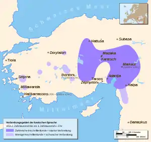 مناطق انتشار اللغة اللوية بأواسط الأناضول وشمال غرب سوريا.