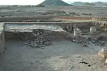 جانب من الموقع - قامت جامعة الملك سعود بعمل مسح أثري وعمليات تنقيب على عدة سنوات، وقد استغرق الموسم الأول لحفائر المابيات الأثرية قرابة الشهر والنصف في عام 1404هـ ، ومن معثورات التنقيب: