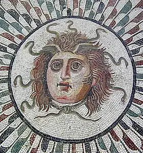 ![]() فسيفساء ميدوسا معروضة في المتحف. | |