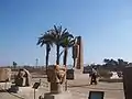 أجزاء من تمثال رمسيس الثاني المنبطح، في معبد بتاح بمنف