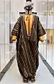 العباءة (مَنْسُول)/صنعه علي بن حمد الكندي/بهلاء، شمال عُمان/صوف أسود منسوج على نَول مجوَّف مع تطريز من القطن/أواخر القرن 20م