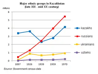 | العواقب | انخفض الكازاخيون من 60٪ إلى 38٪ من سكان الجمهورية |