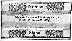 - الانتخابات البابوية - من الموسوعة الكاثوليكية. (بالإنجليزية)