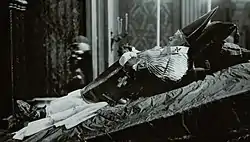 وبعد الأيام الثلاثة، يوضع البابا في تابوت مثلّث، الأول من خشب السرو المبطن بالحرير الأحمر والثاني ملبس بالرصاص والثالث من خشب السنديان. ويتولى عميد مجمع الكرادلة مهام رئاسة حفل الجنازة الذي يتم في كاتدرائية القديس بطرس أو ساحة القديس بطرس، وبعد القدّاس الجنائزي يدفن البابا في سراديب الكاتدرائية أو في المكان الذي يختاره شخصيًا بوصيته التي تقرأ على الكرادلة خلال الأيام الثلاثة لعرض جثمان البابا، والتي تترافق أيضًا مع القداسات وتلاوة المسبحة الورديّة.[12]